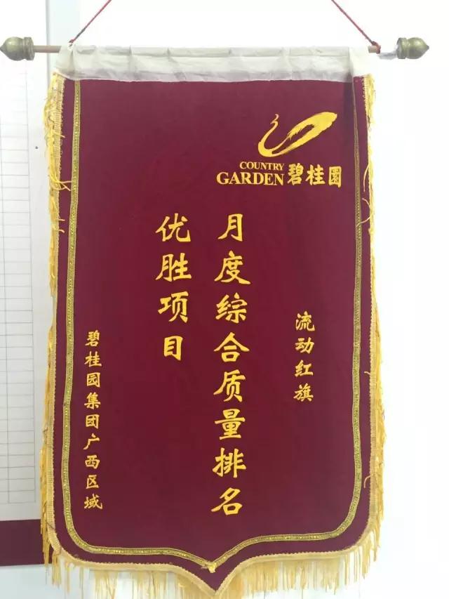在碧桂园广西区域工程项目工程管理总结大会上,百色碧桂园施工单位取得第三名的佳绩,并荣获“2017年上半年百色市施工安全文明标准化工地”称号,授以“匠心工法样板”锦旗。